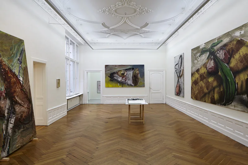 Dieter Krieg studies our history through writing and the impulsiveness registered therein, through the means of painterly analyses of subjects, such as canapés and chicken legs, and through artistically specific reworkings of the story of our lives. In collectively bound images this story appears expressively beautiful, disturbing and at the same time full of conflict.